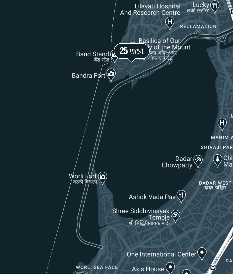Bandra West’s own gated community, at last. This project in the elite Mount Mary area, is the neighbourhood’s best kept secret, embodying the spirit of metropolitan living. A unique panoramic sea view that lets you embrace the serenity of seaside living, while keeping your finger on the vibrant pulse of city life. At 25 West you can have it all.